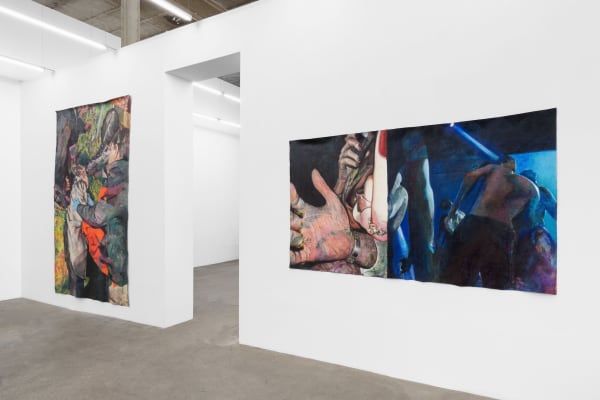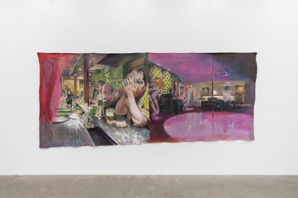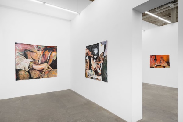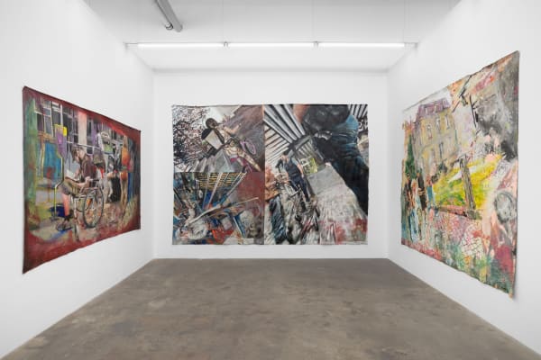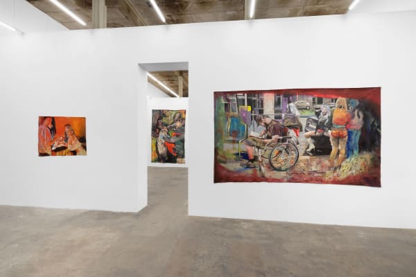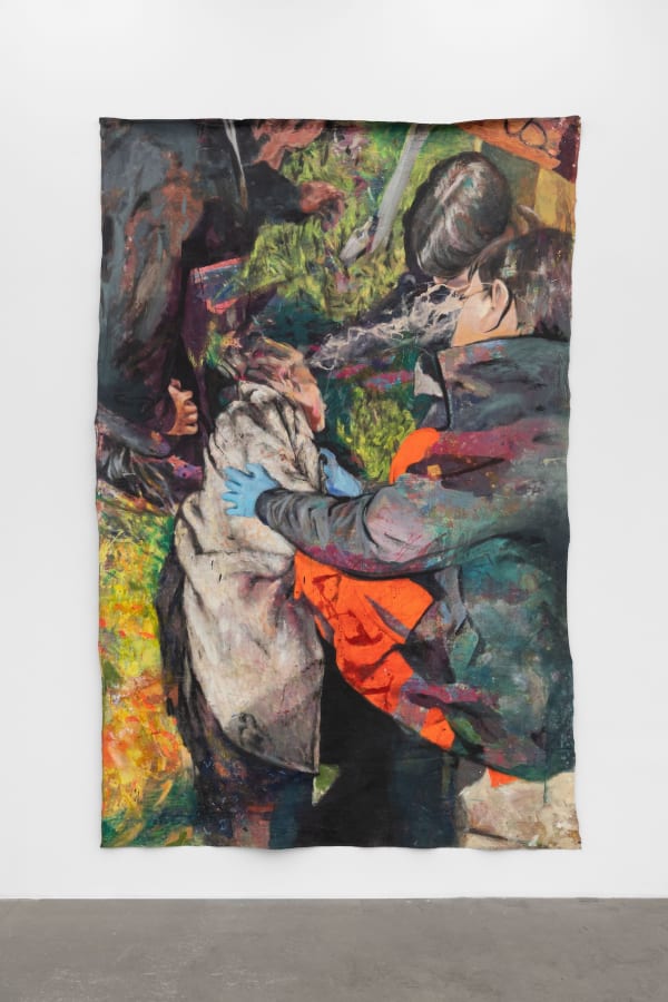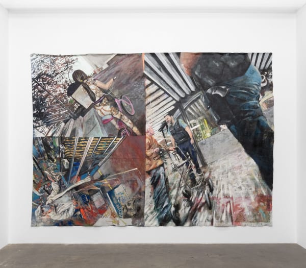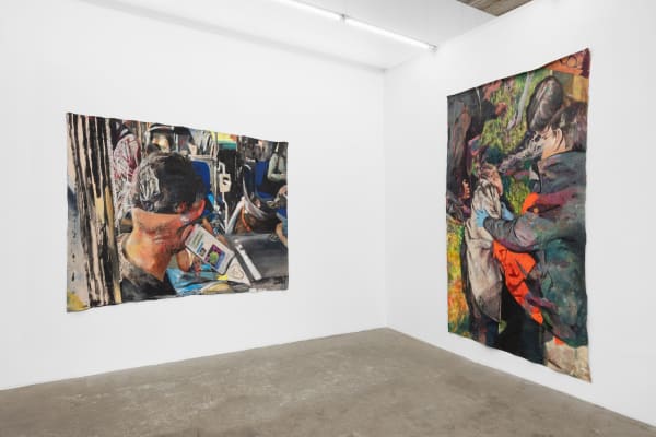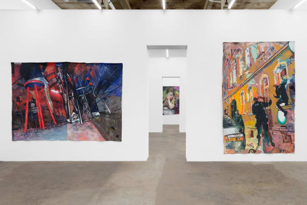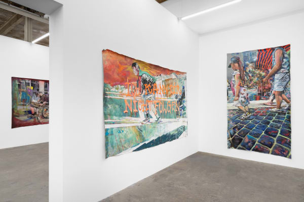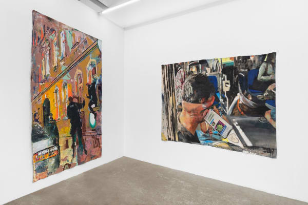 In his debut solo show with the gallery, upcoming & next generation painter Gustav Sonntag presents us a series of paintings which have the urban street as their stage of event. Within this visual journey, painted in brusque and fast brushstrokes, the audience is confronted with multiple scenes and characters of everyday urban life, with themes ranging from coming of age, politicization, addiction, violence, poverty, hope and notions of respectability.