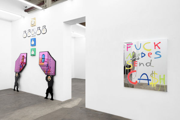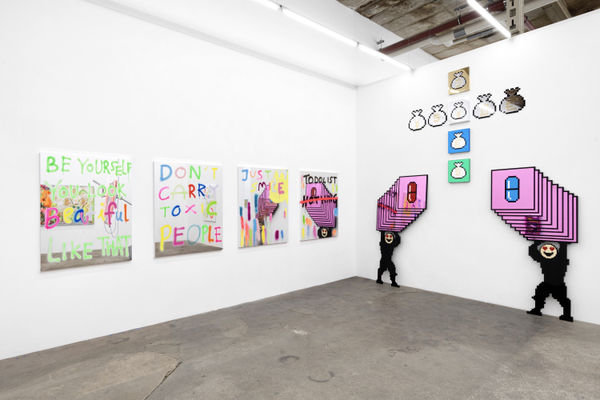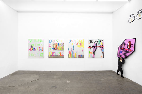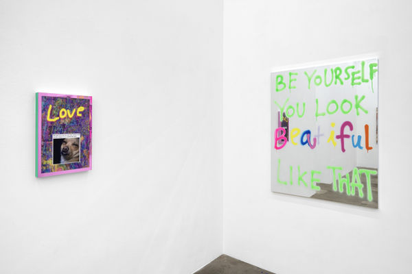 Von Motz expresses himself in a variety of media, from painting to sculpture, object art to installation. Essential for him is to have a reference to the image carrier or object on which he acts upon. Already iconic are his mirror works, for which he combines text and image on mirrors. A strategy that refers, among other cultural backgrounds and phenomena, to the digital meme culture, which in turn ties in with the popular genres and visual strategies of the poster, the comic, and advertising. In his work, the artist mixes the communication strategy of direct address intermedially with the mirror as a pictorial space into which the viewer enters, in which reality and virtuality blur together, and the subject is thrown back onto intimate, psychological levels of self-observation. The moment of introspection and that of transformation appear in a multidimensionality: Freudian (self)questioning appears as well as a re-actualization of mythological narratives such as that of Narcissus, with von Motz's works providing an ironic as well as empathic commentary on a narcissistic society. This society is mirrored here in its collective numbing in the representations within social media. In this sense, von Motz ultimately confronts visitors with the choice of remaining in the dream world controlled by machines or being freed from the simulation. Self Care appears - quite in the ancient tradition - as a complex theme: as a social paradigm, a call to self-care, an everyday life experience and a critical analysis in equal measure.