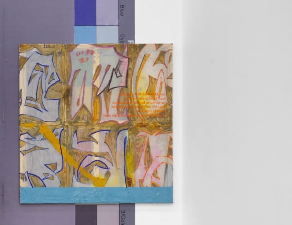 Die Vergleichsfarbkarten, die in den großformatigen, tapetenhaften Hintergründen sichtbar bleiben, fügen der Irritation zwischen Malerei und digitaler Reproduktion einen weiteren analytischen Aspekt hinzu: Auch die Arbeit im Digitalen ist ein handwerklicher Prozess. Das alternative Referenzsystem der Farbkarten setzt sich in den Signaturen der Bilder fort. Sie erhalten eine Zahlencodierung, in denen der biografische Moment des Tagebuches eng an emotionale Zustände geknüpft wird, ohne auf konkrete Daten zu referieren. Das Subjektive gewinnt gegenüber objektivierbarer Fakten an Bedeutung: die Jahreszeit, der Tag, das Lebensalter – Indexe wie Aktenvermerke. Sie lassen in ihrer Bezugnahme auf das Alter eine individuelle Reifung vermuten, zumindest eine Differenz, die die Voraussetzung dafür ist, die biografische Markierung mit jeweils spezifischen Eigenschaften zu identifizieren. Nur so kann die Signatur eine Orientierung erlauben.