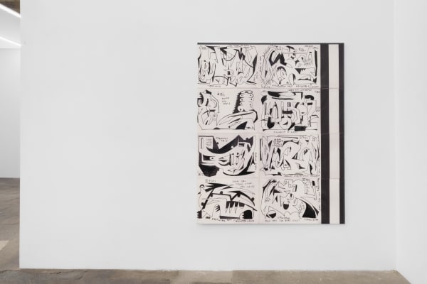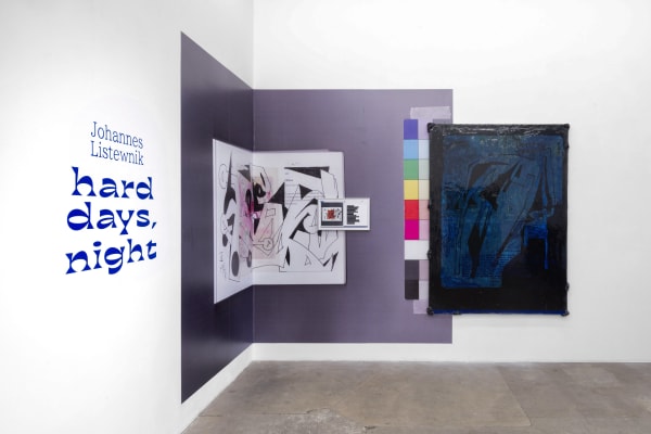Johannes Listewniks erste Einzelausstellung in der Galerie Philipp Anders erscheint so als Zustandsarchiv, wie es sich aus Tage- und Skizzenbüchern speist, als Reflexion über die eigene Rolle im Kunstbetrieb und als Versuch, die Auseinandersetzung mit der Gegenwart aus dem Ephemeren in ein Werk zu übertragen. Die popkulturellen Referenzen ergeben sich dabei aus der HipHop-Kultur und Graffiti, aber auch aus kanonischen Songs wie „A Hard Day’s Night“ der Beatles oder zeitgenössischen Bildproduktionen. Es gibt diese harten Tage, ein bisschen Buckeln. Viele dieser Bilder drehen sich um Arbeit, Reflexion und Sehnsucht. Einerseits ein Ateliermythos: das Ringen mit den Bildern, das aber nur ironisch gebrochen möglich ist. Und andererseits gibt es dieses schöne Gefühl eines langen Tages: Man macht die Nachttischlampe aus und es ist gut.